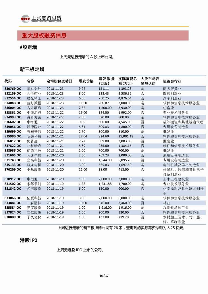 | 當(dāng)前位置:新聞中心 > 上實(shí)-融資工具周報(bào)20181116-20181123 | |||||