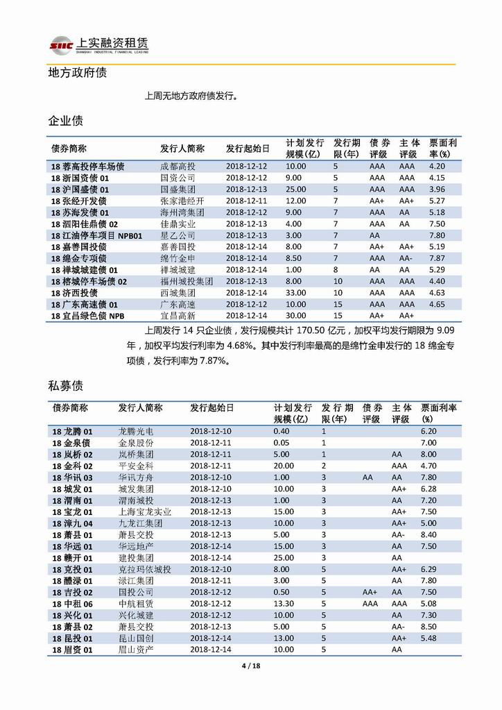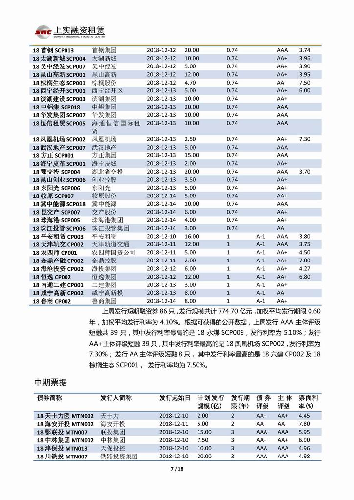 | 當(dāng)前位置:新聞中心 > 上實(shí)-融資工具周報(bào)20181207-20181214 | |||||