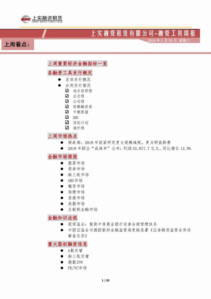 | 當(dāng)前位置:新聞中心 > 上實(shí)-融資工具周報(bào)20190118-20190125 | |||||