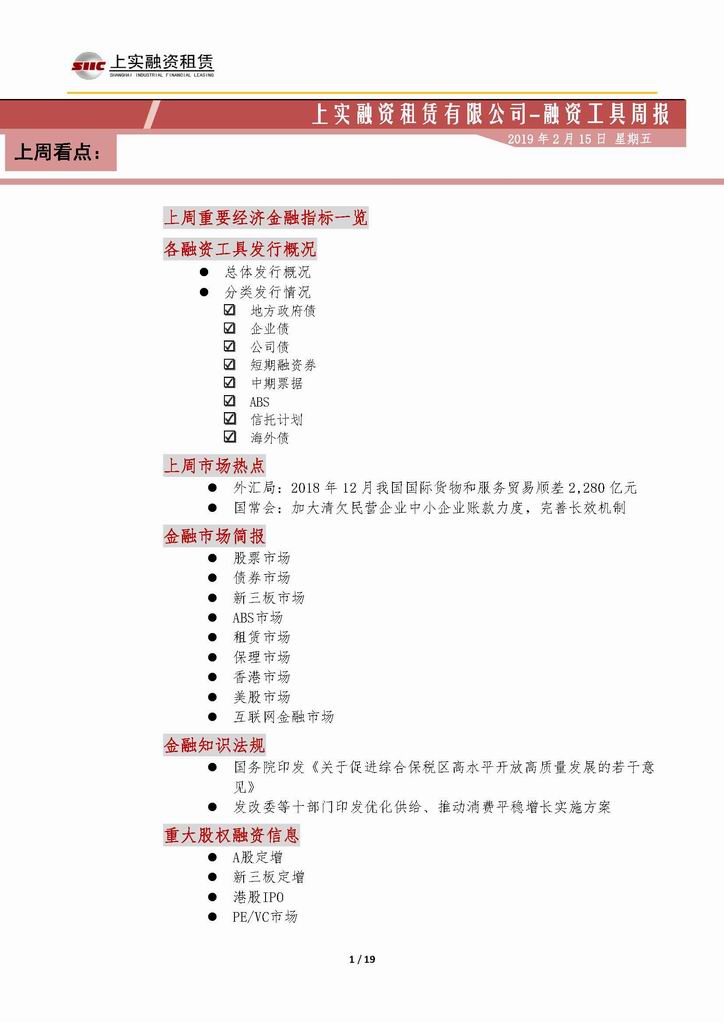 | 當(dāng)前位置:新聞中心 > 上實(shí)-融資工具周報(bào)20190125-20190208 | |||||