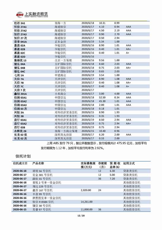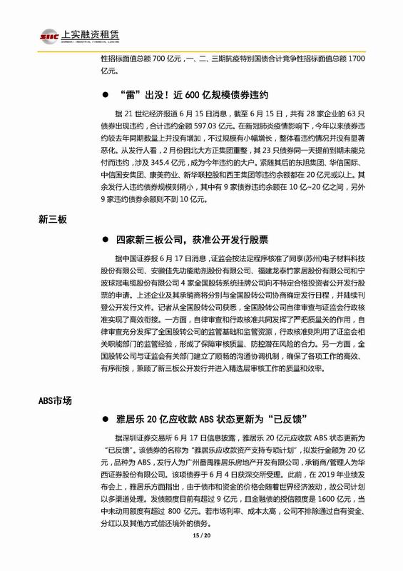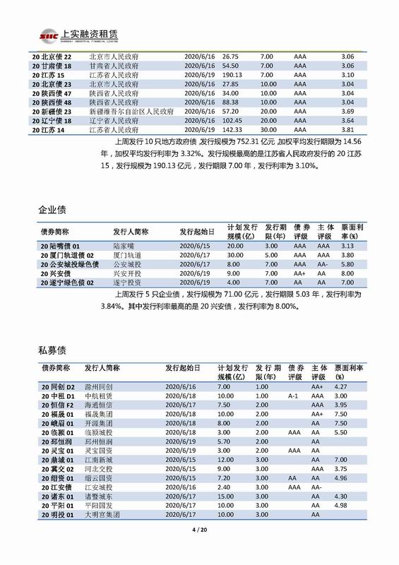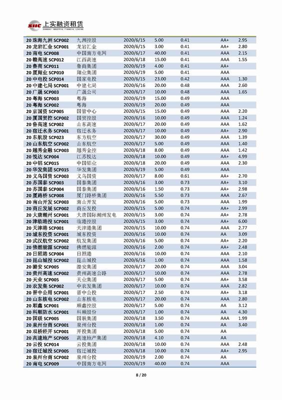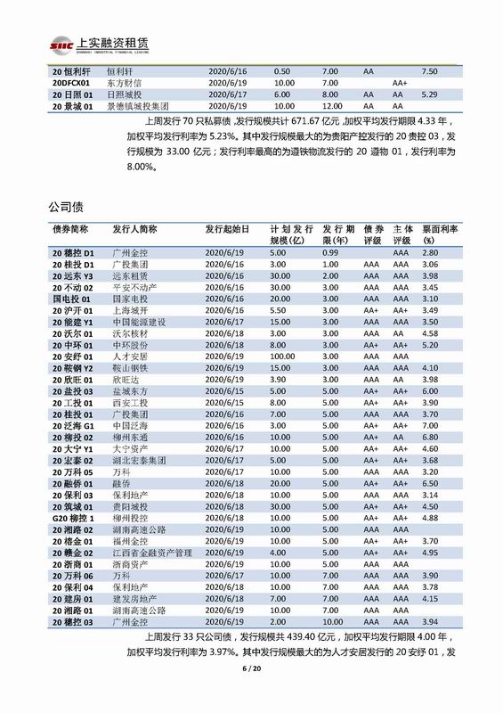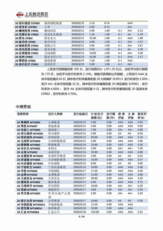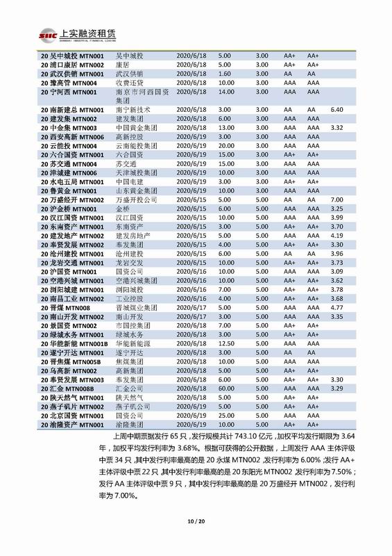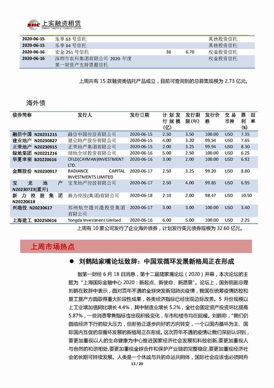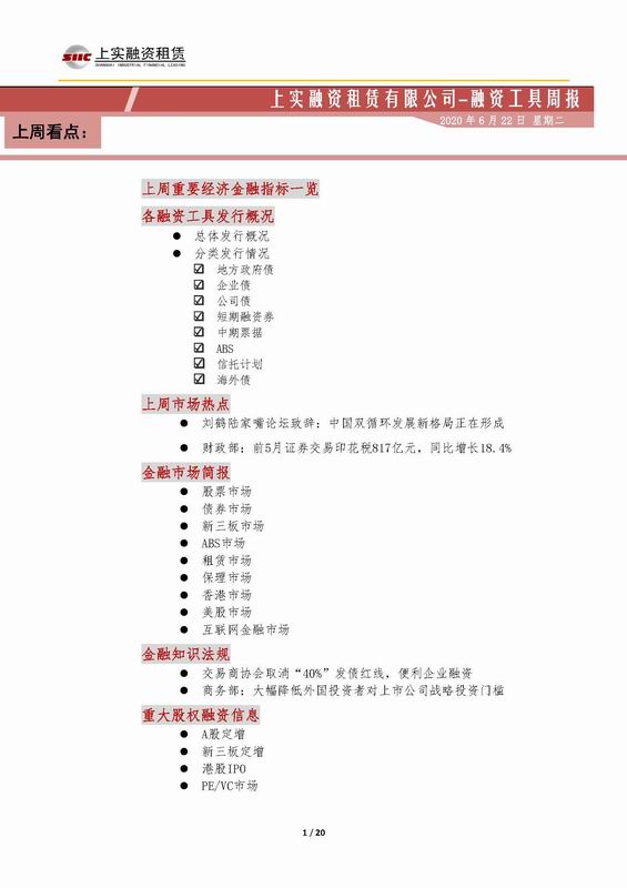 | 當(dāng)前位置:新聞中心 > 上實(shí)-融資工具周報(bào)2020.6.15-2020.6.19 | |||||