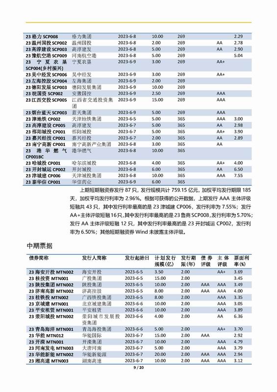 | 當(dāng)前位置:新聞中心 > 上實(shí)-融資工具周報(bào)2023.6.5-2023.6.9 | |||||